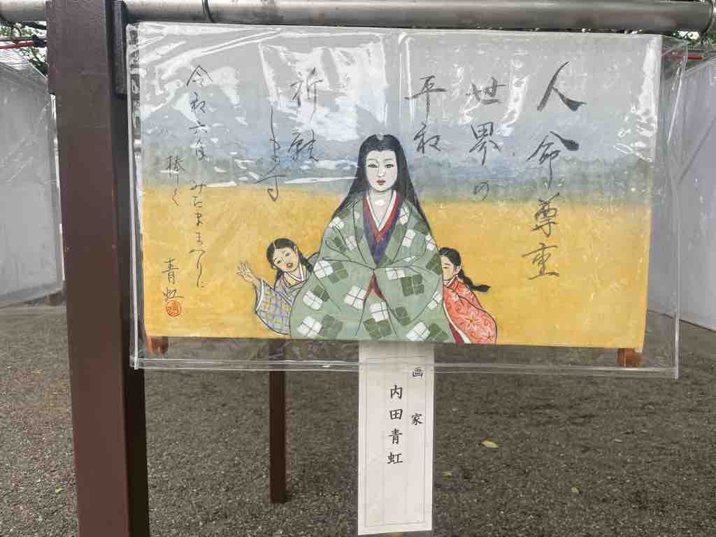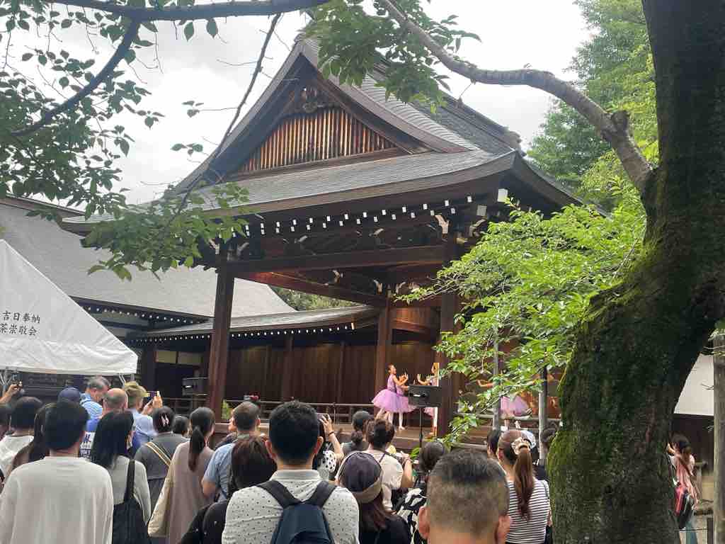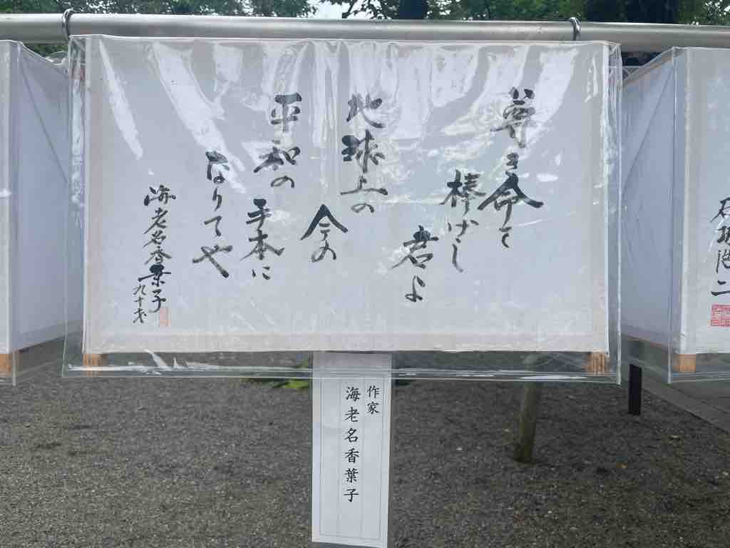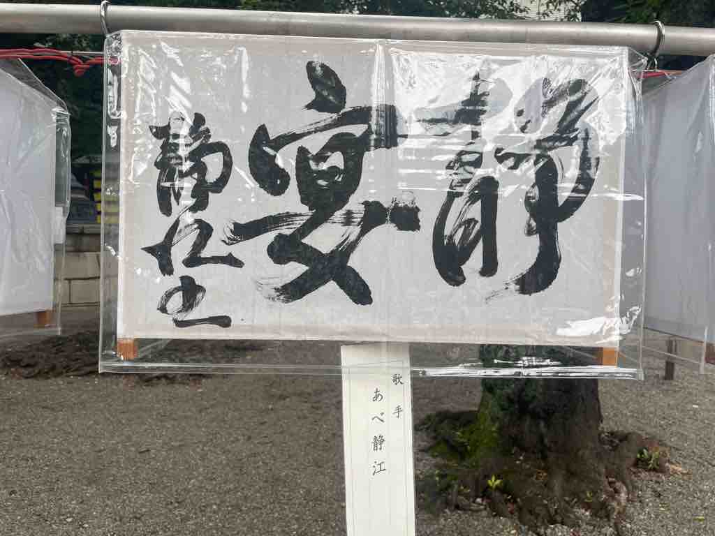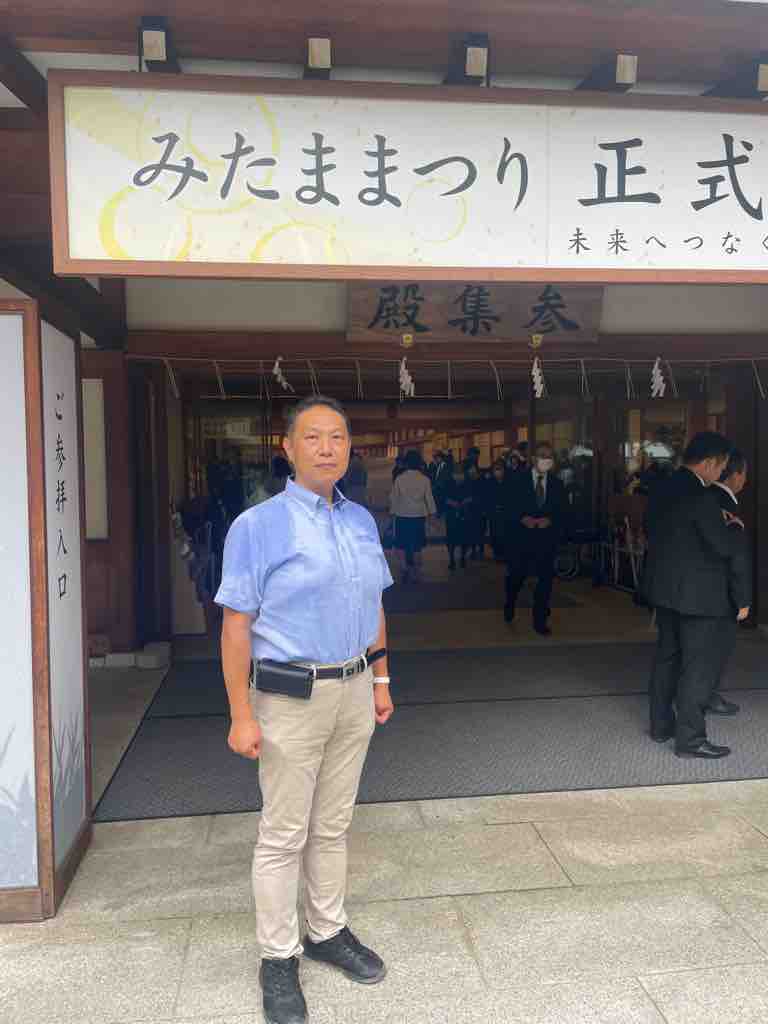 まつりで賑わう境内を背景に、祀られている英霊に向かい、一命を斗して皆の笑顔が溢れる今の日本に繋いでくださったことに感謝申し上げるともに、自分もまたこの国により良きものを積み上げて次世代に繋いでいくことをお誓い申し上げました。