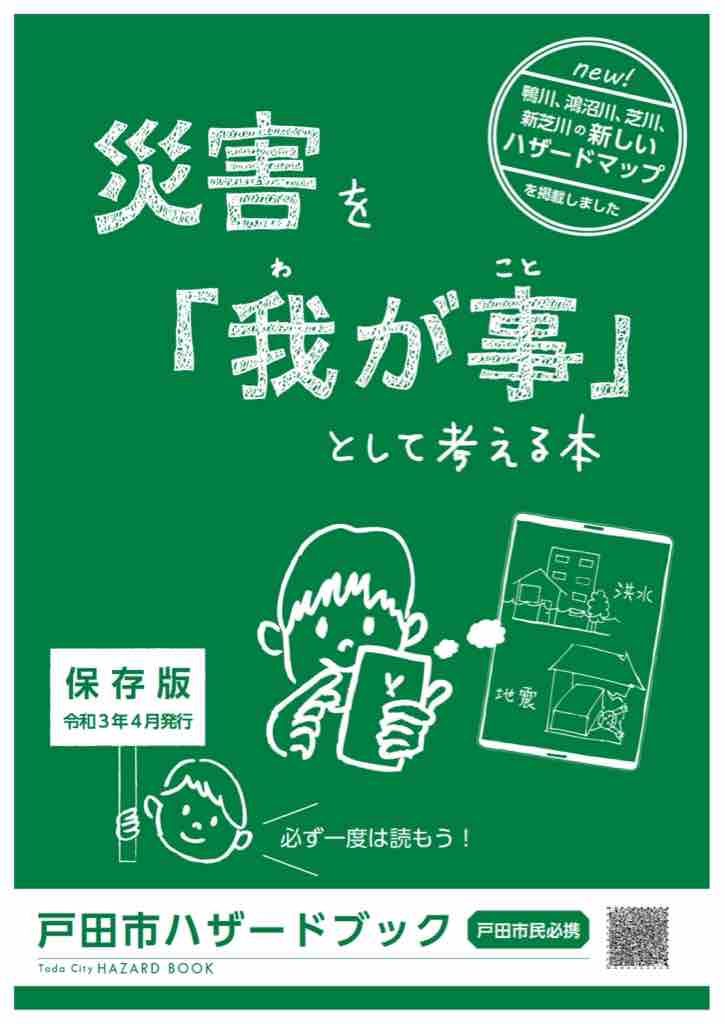 戸田市にお住まいの方は、戸田市ハザードブック「災害を『我が事』として考える本」を必ずお読みください。