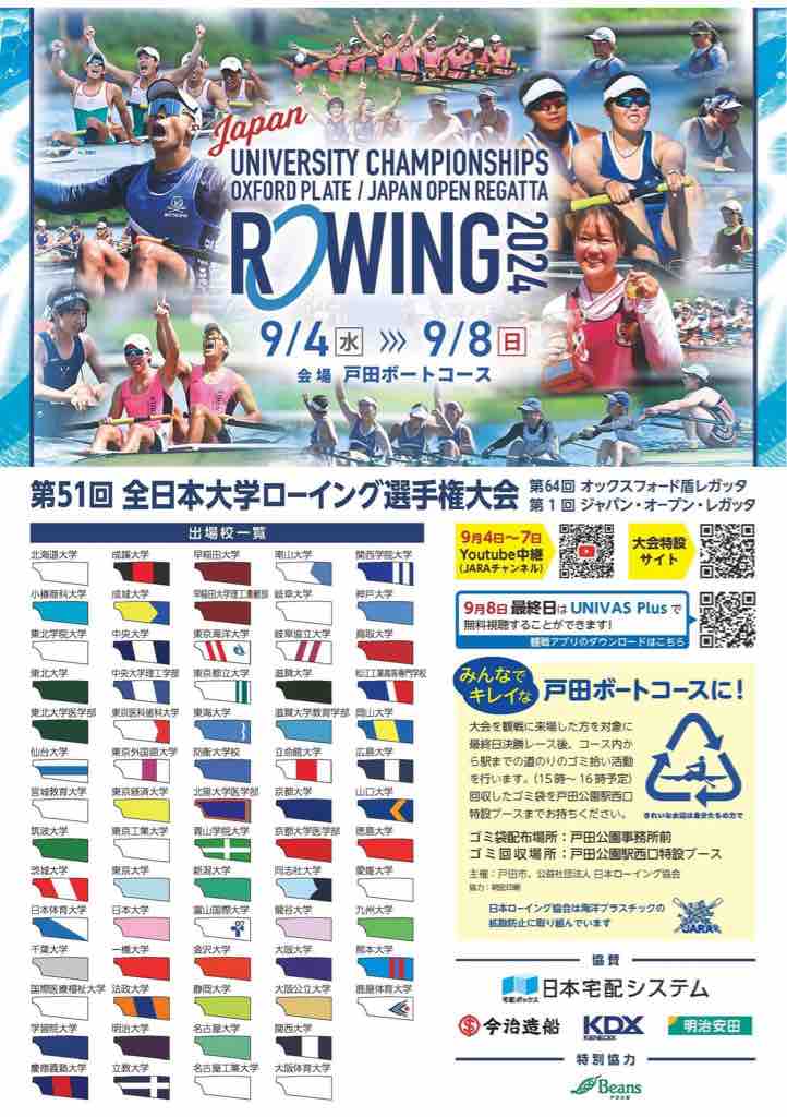 ■「第51回全日本大学ローイング選手権」が戸田ボートコースが始まりました!9月8日(日)の決勝戦目指して今日も熱い闘いが繰り広げられます。ぜひ、戸田ボートコースで応援ください。