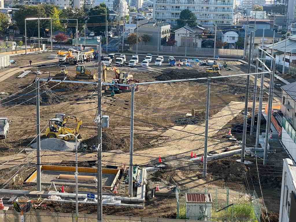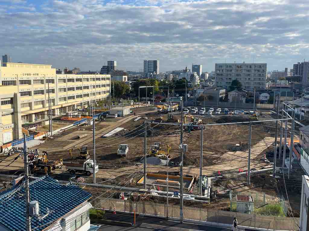 ■戸田市立戸田第一小学校の建て替え最終段階に。運動場を囲むように防球フェンスを張るような鉄枠が立ち並びました。10月22日現在の状況をご覧ください。引き渡しは12月予定です。