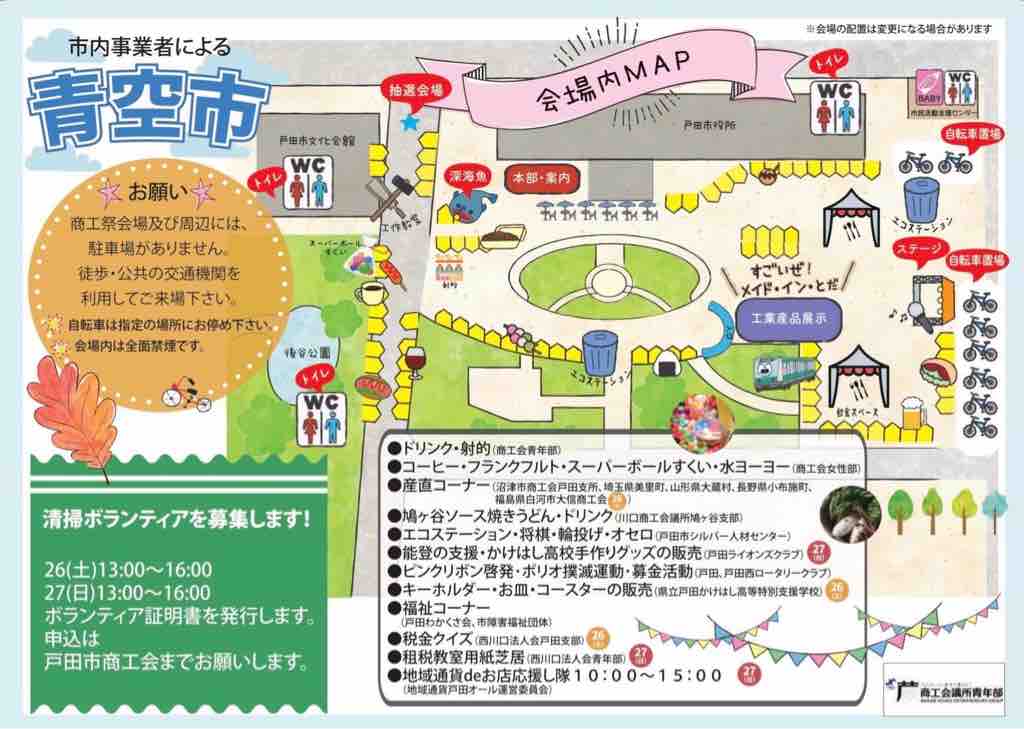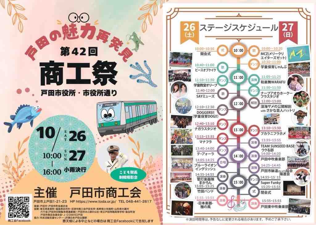 戸田市10月の一大イベント「第42回商工祭」が本日10月26日・27日(土日)午前10時から16時まで開催されます。会場は戸田市役所内と市役所西側の市役所通りです。