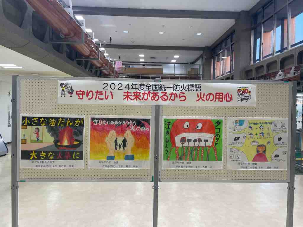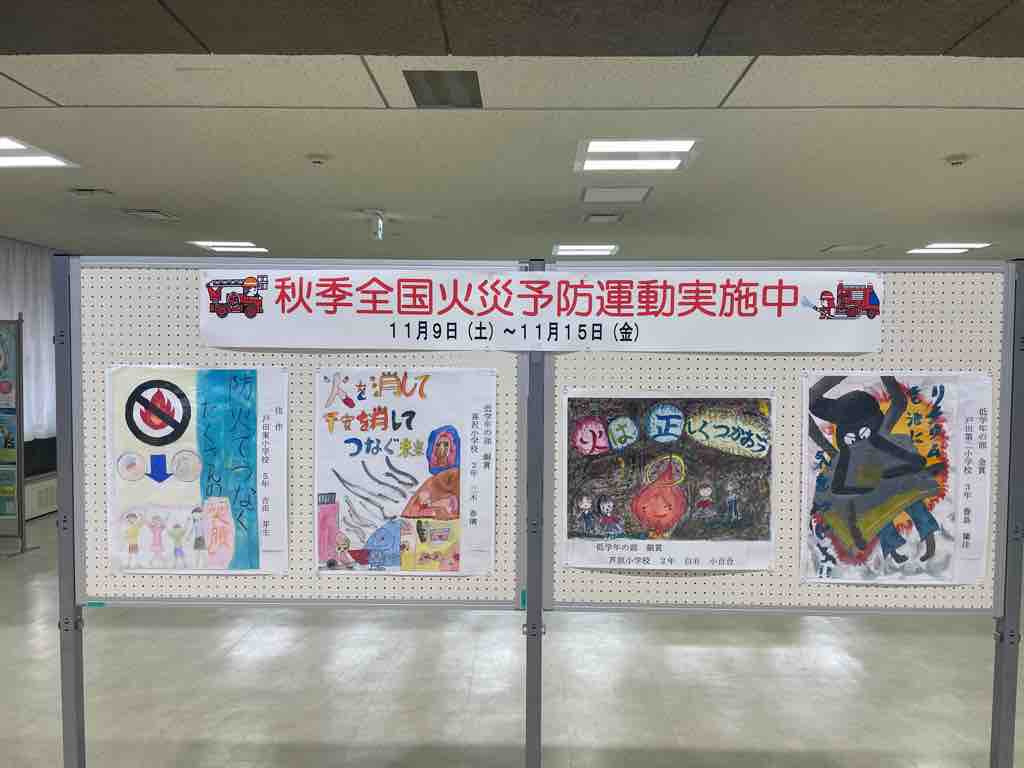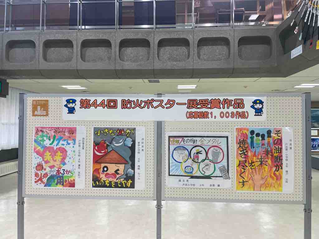 秋季全国火災予防運動開始(11月9日から15日まで)とともに、戸田市役所で「第44回防火ポスター展受賞作品」の紹介が始まりました。