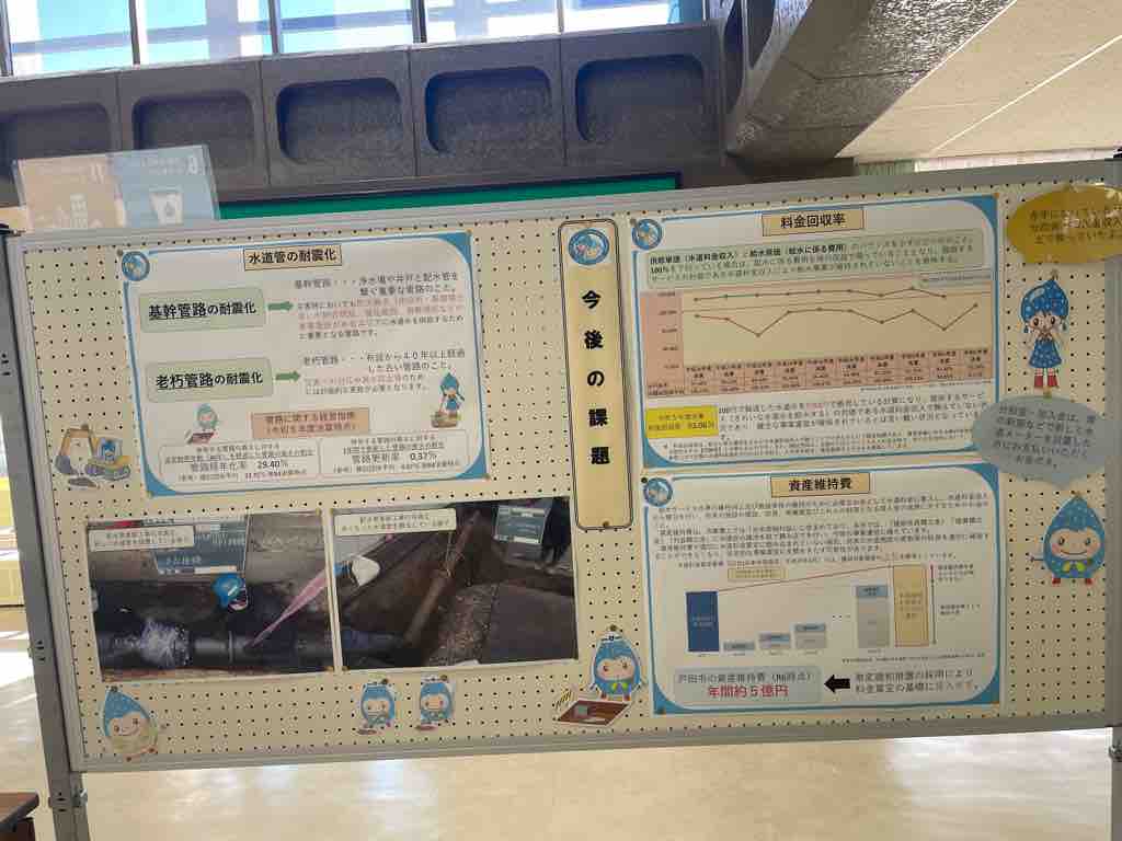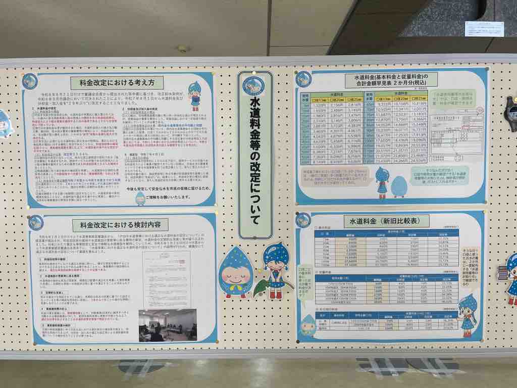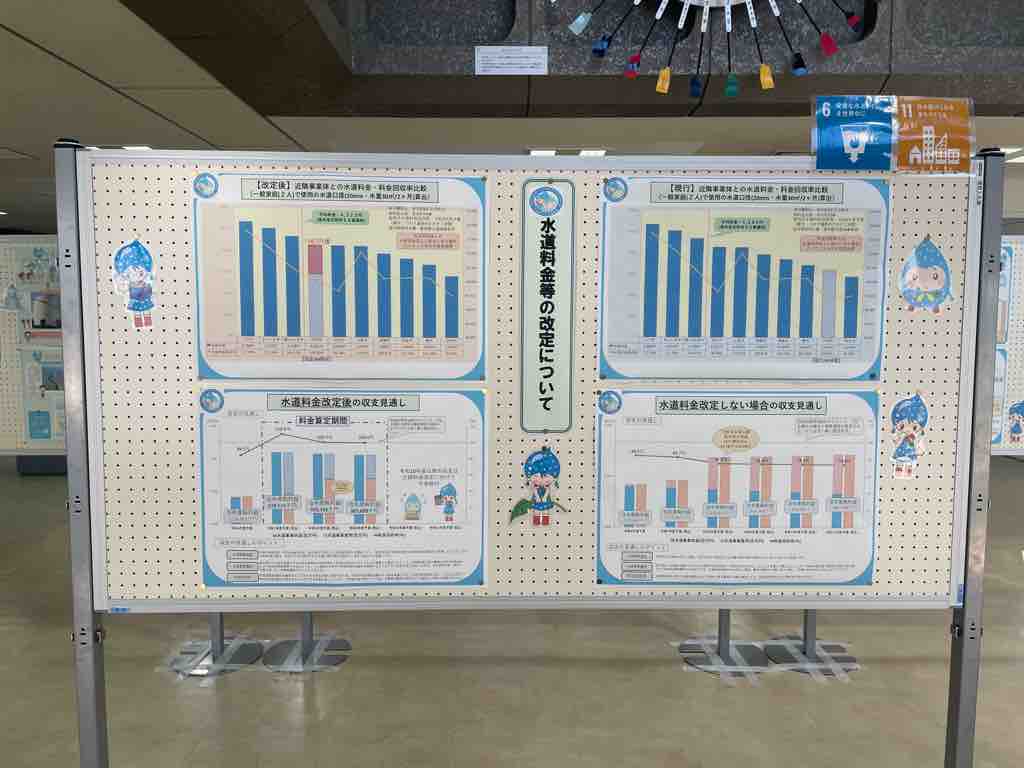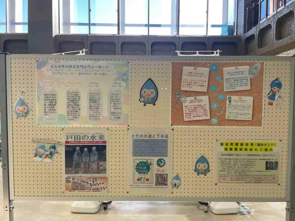 現在、水道料金改定に関する説明パネルが戸田市役所2階ロビーに展示されています。