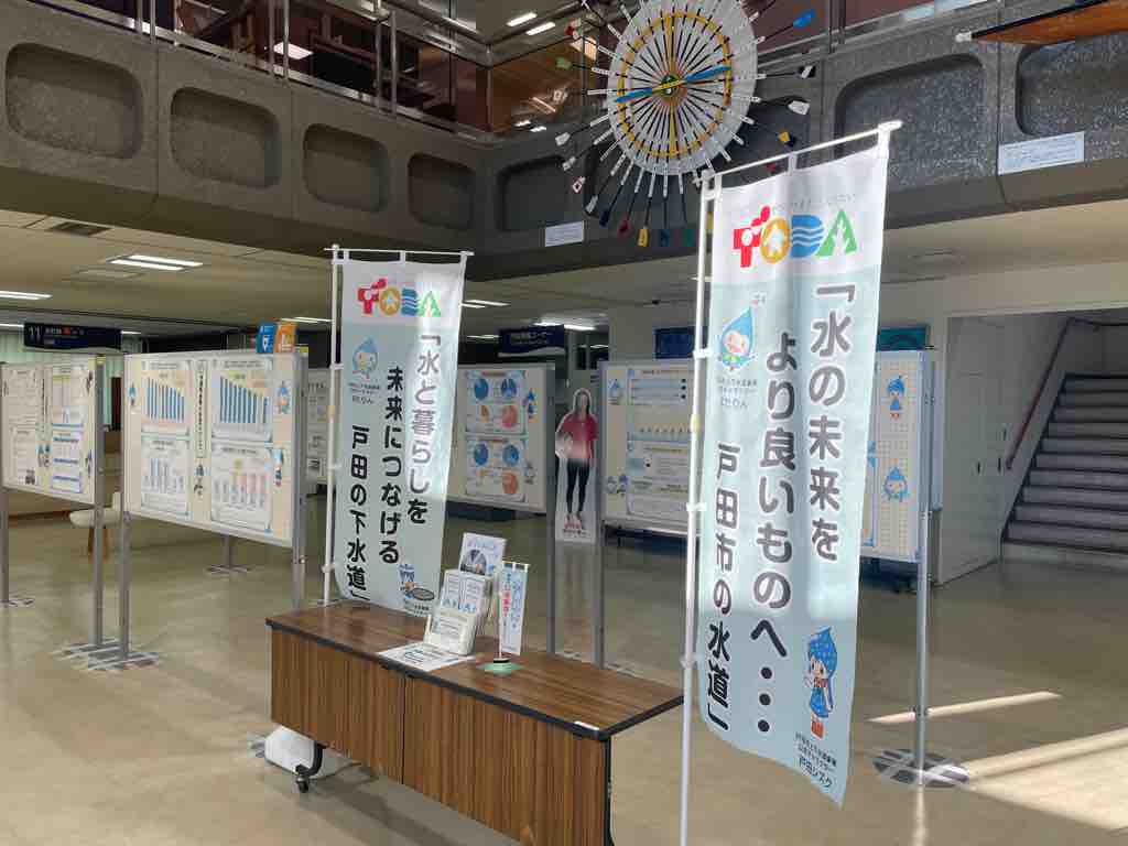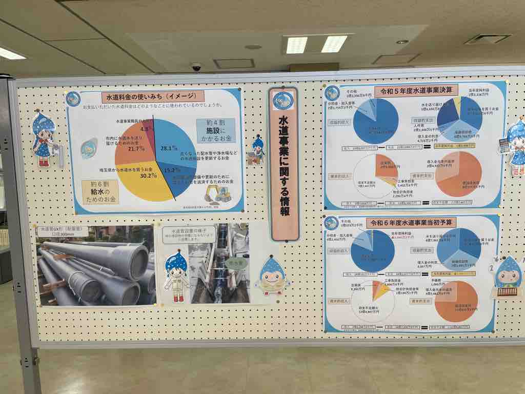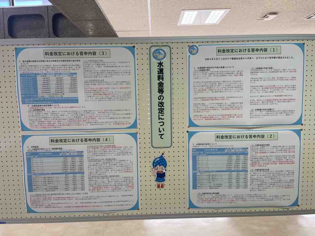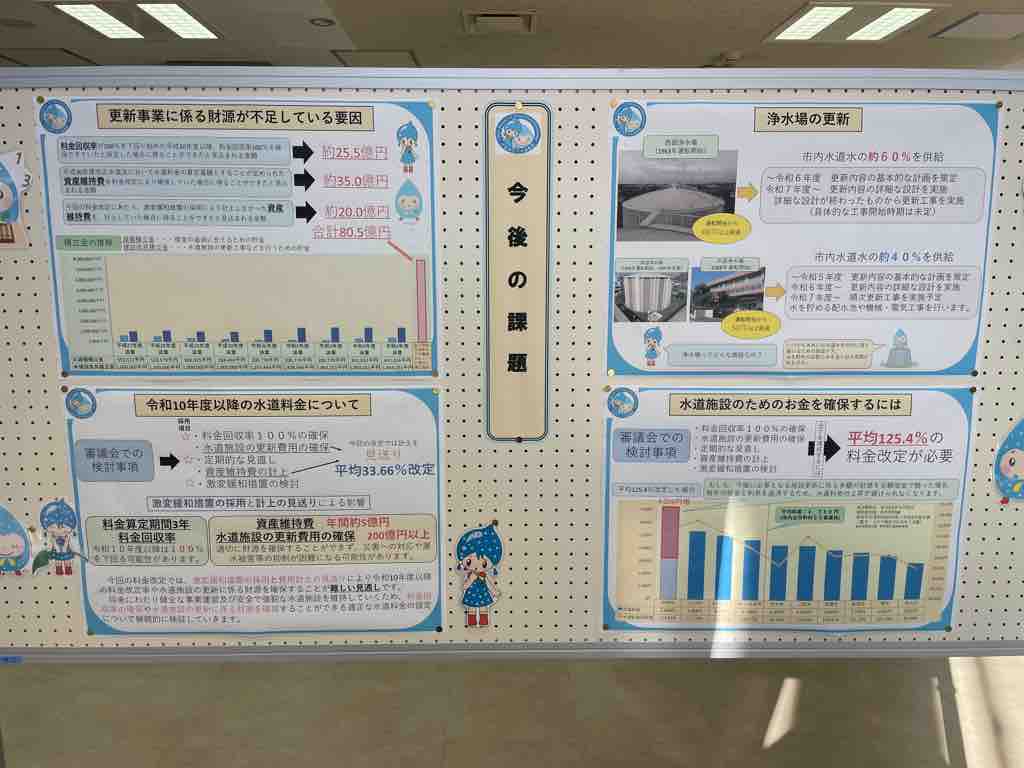 現在、水道料金改定に関する説明パネルが戸田市役所2階ロビーに展示されています。