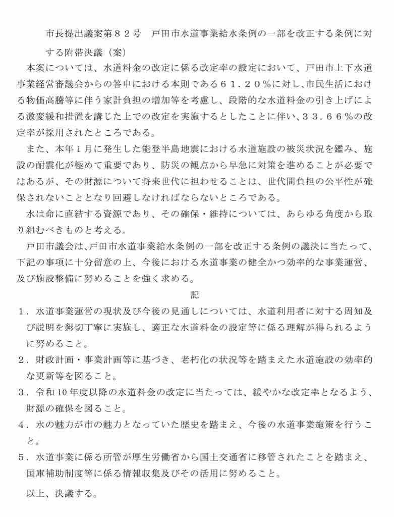 私が所属する戸田市議会市民生活常任委員会でも9月定例会でその報告を受けつつ、市に対して料金改定における付帯決議(要望よりも強い内容)を提出しました。