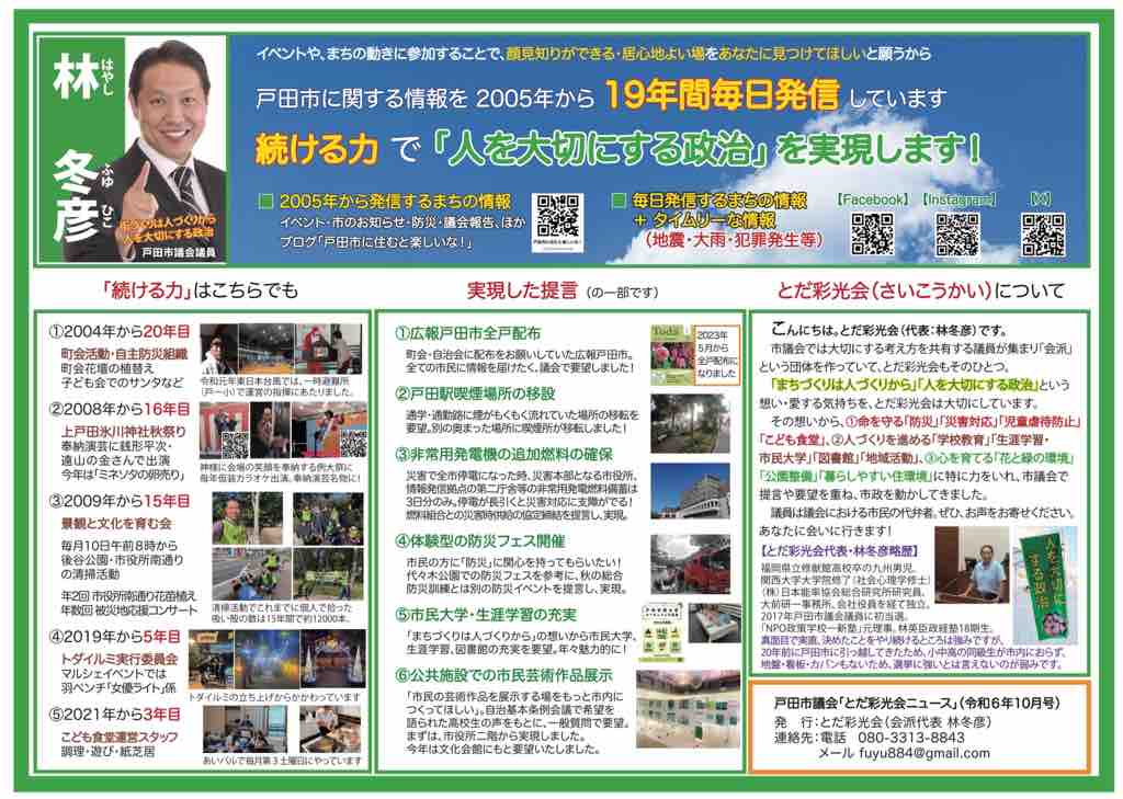 私が戸田市議会議員として何を皆様にお約束するのかについては、どうぞホームページをご覧ください。