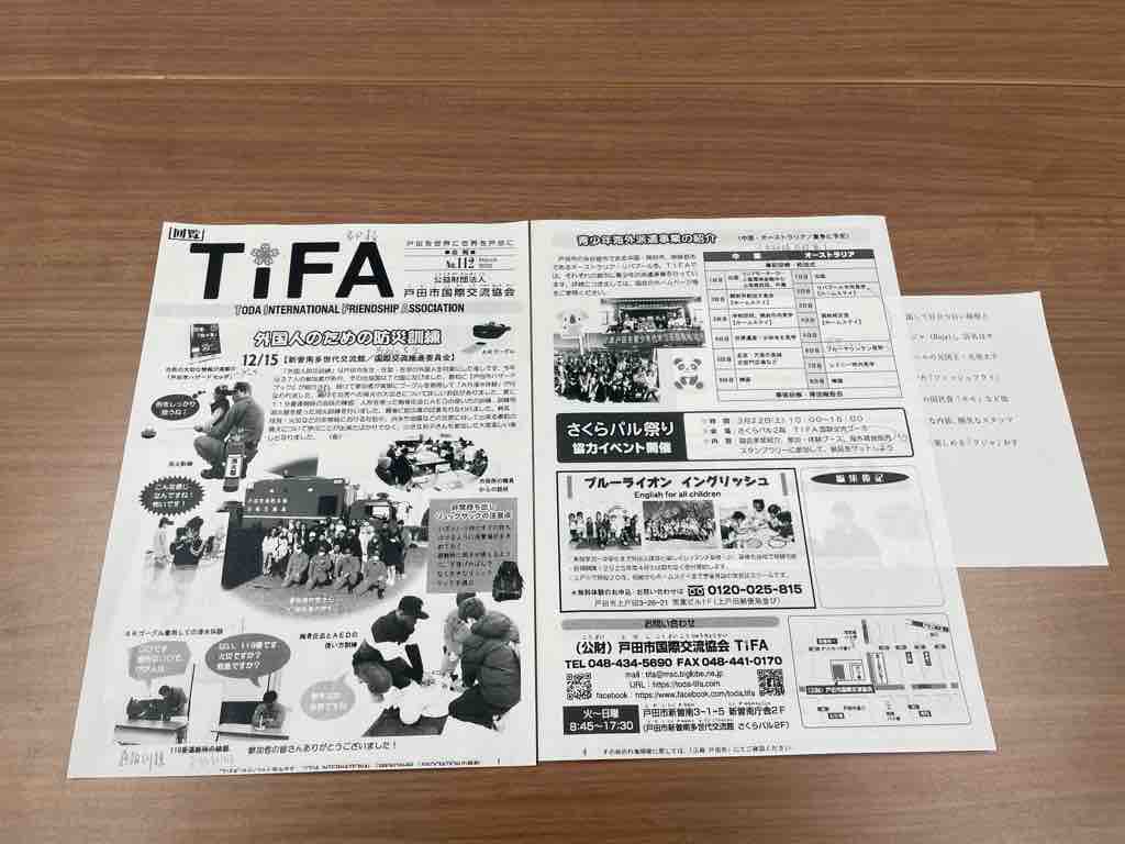 昨晩、公益財団法人戸田市国際交流協会で年4回発行の会報誌TiFAを製作している情報委員会の編集会議に参加しました。