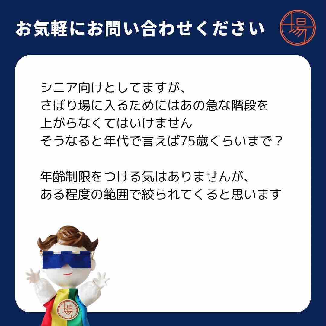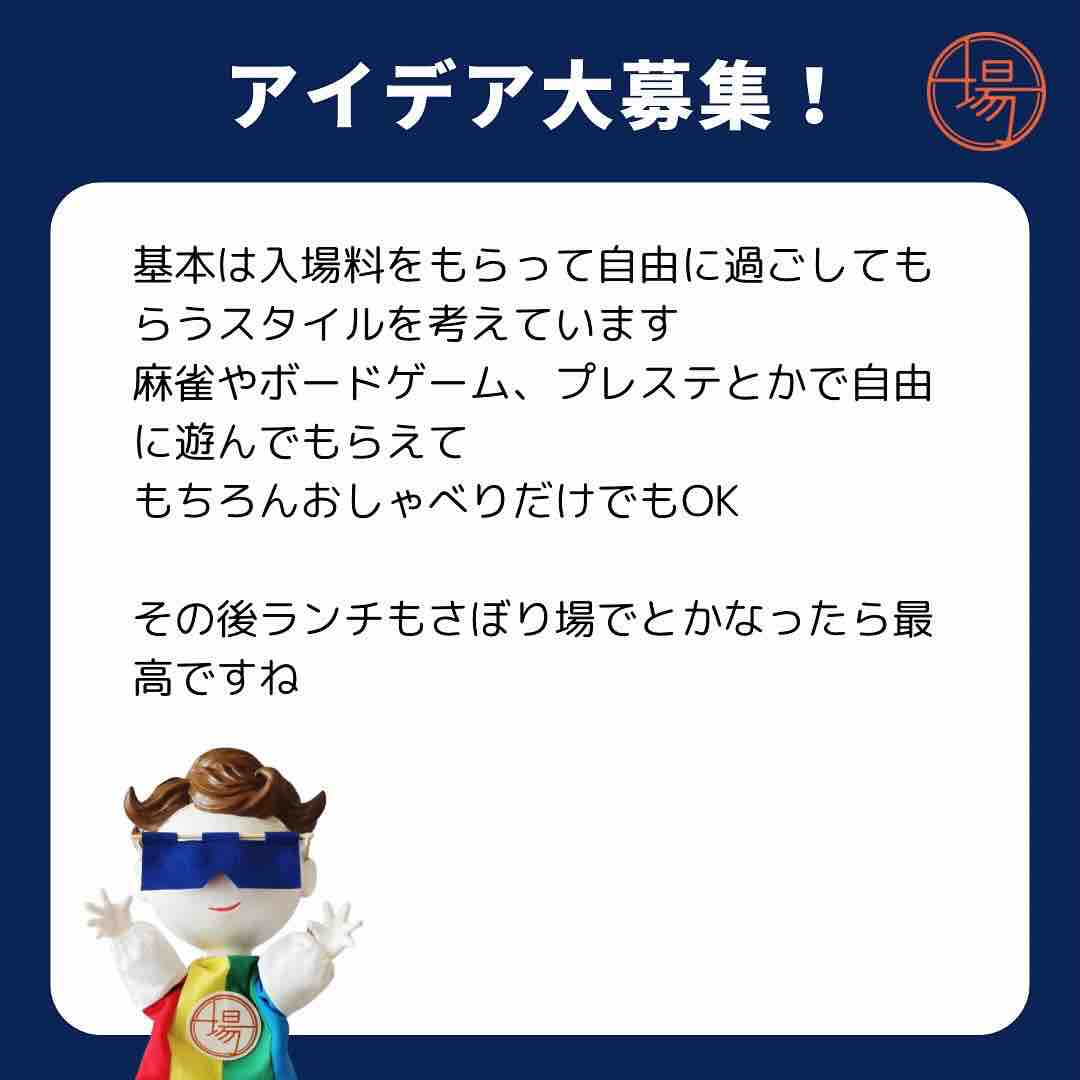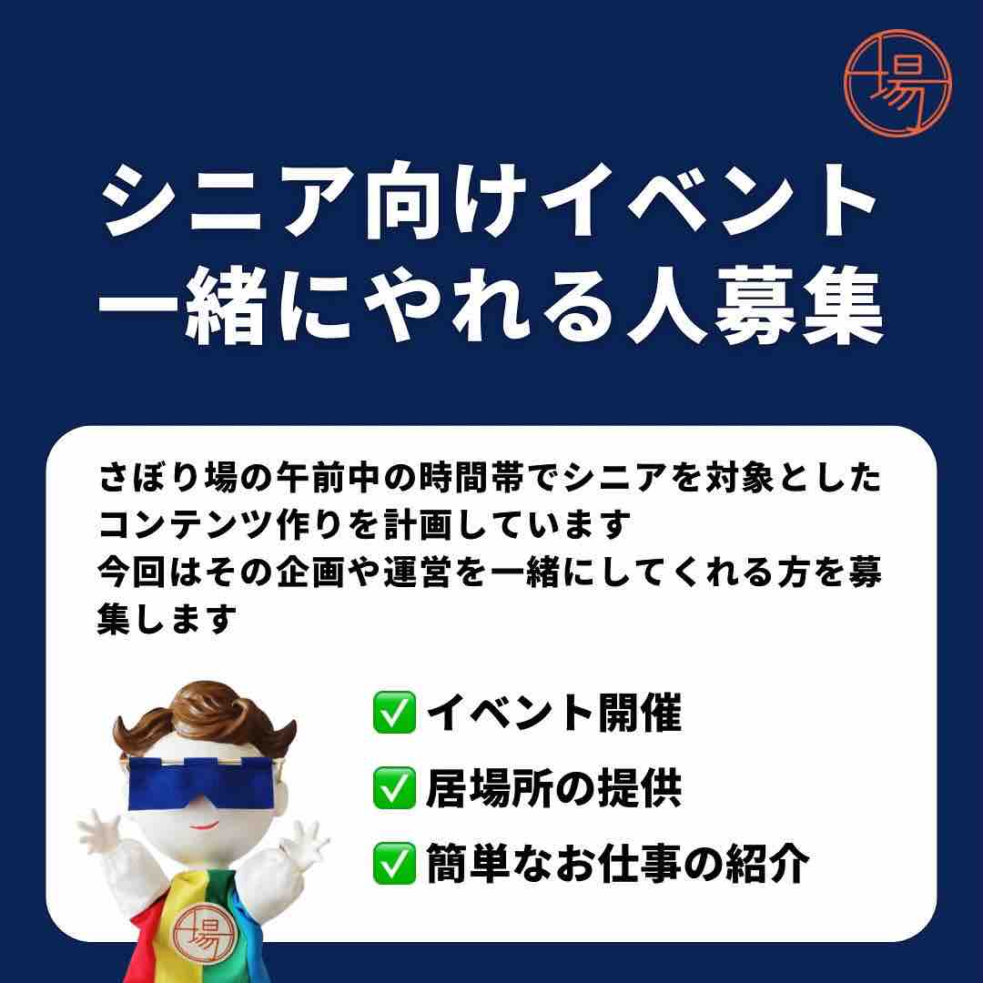 ■戸田市の社交場「さぼり場」さんで、シニア向けイベントを一緒にやってくれる人を募集しています!面白そうです。ご関心のある方はさぼり場さんにお問い合わせください。