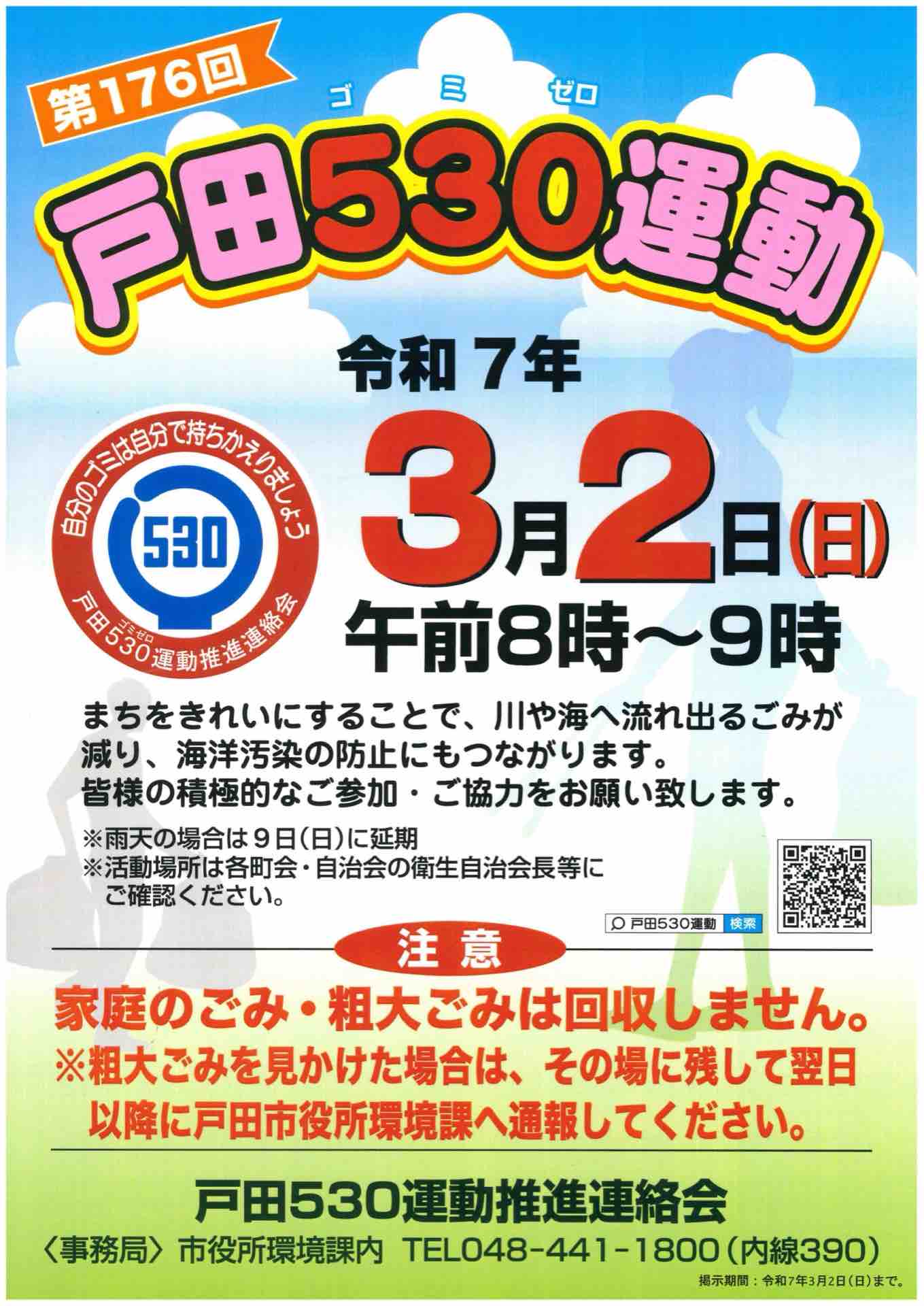 3月2日(日)午前8時〜9時、戸田市内で 「第176回 戸田530運動」 が開催されます! 🏡✨