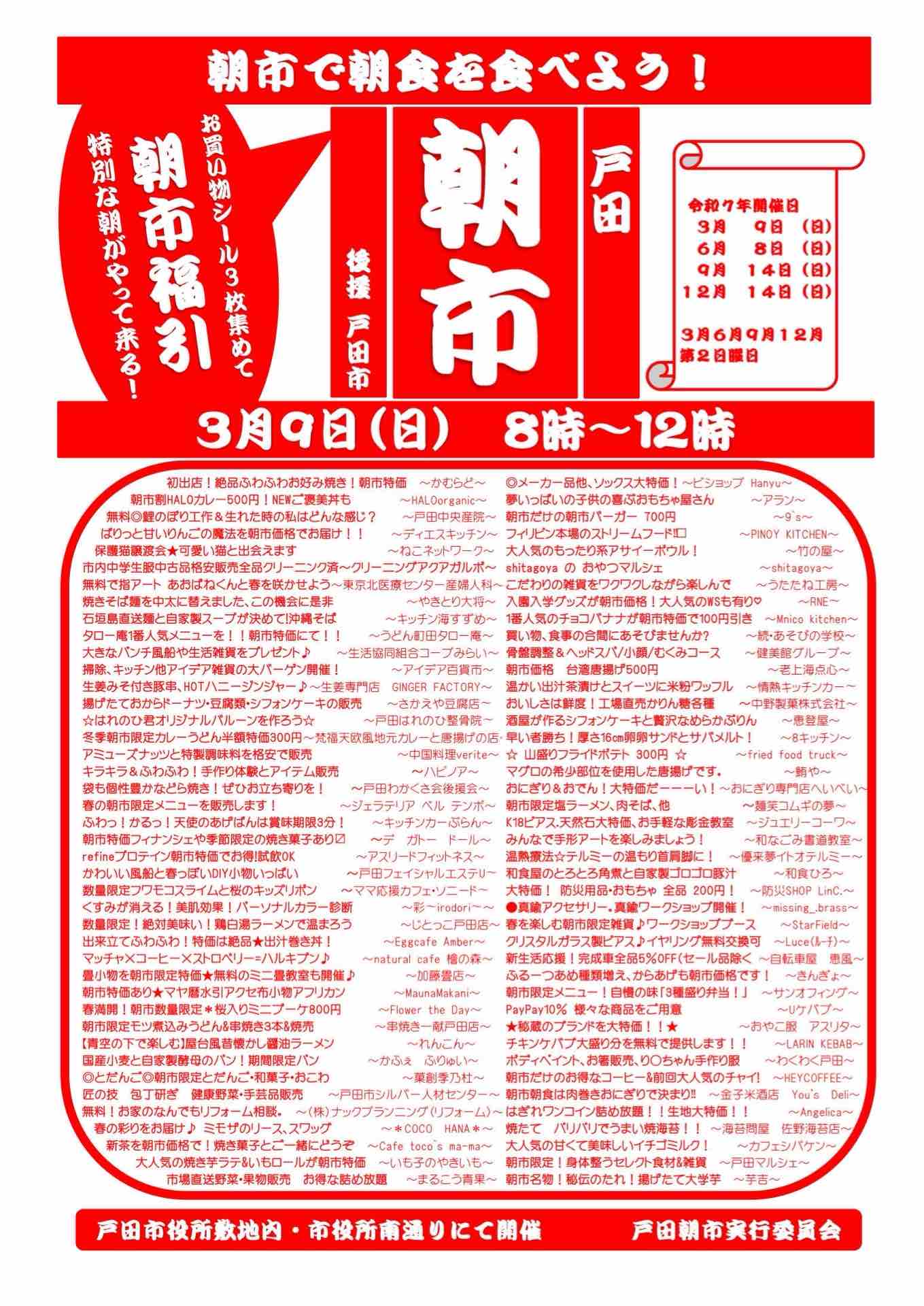 待ちに待ったこの日!3月9日(日)は「戸田朝市」で朝からワクワクしよう♪