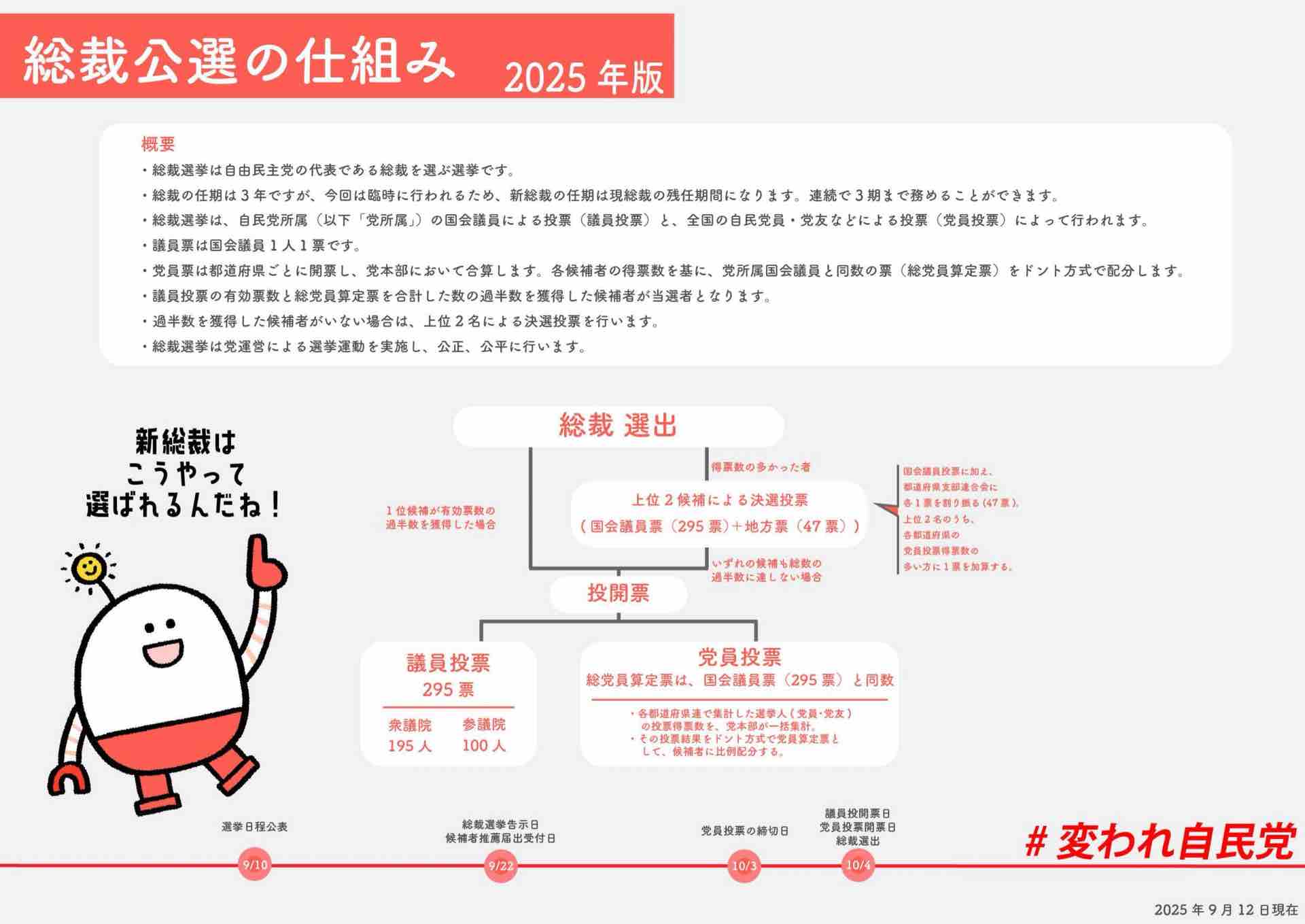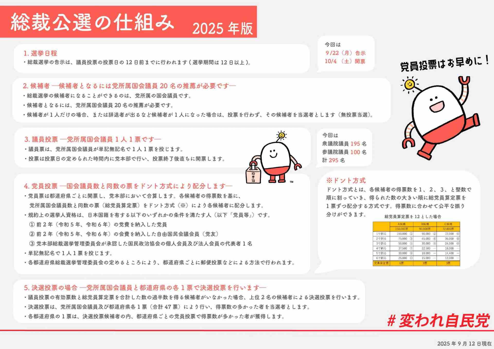 自民党党員の思いが現れるのは最初の党員票。総裁選自体は、これに議員票が加えられて決定されます。