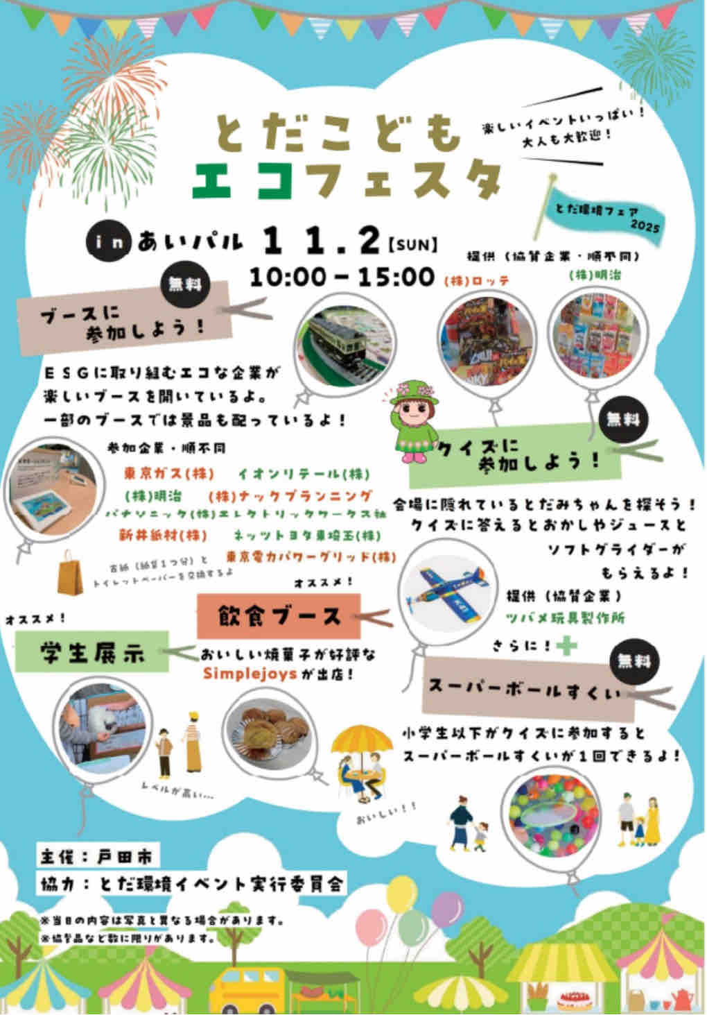 ■「とだこどもエコフェスタ 2025」11月2日(日)上戸田地域交流センターあいパルを会場に開催! 親子で楽しみながら、エコな環境について学びましょう!