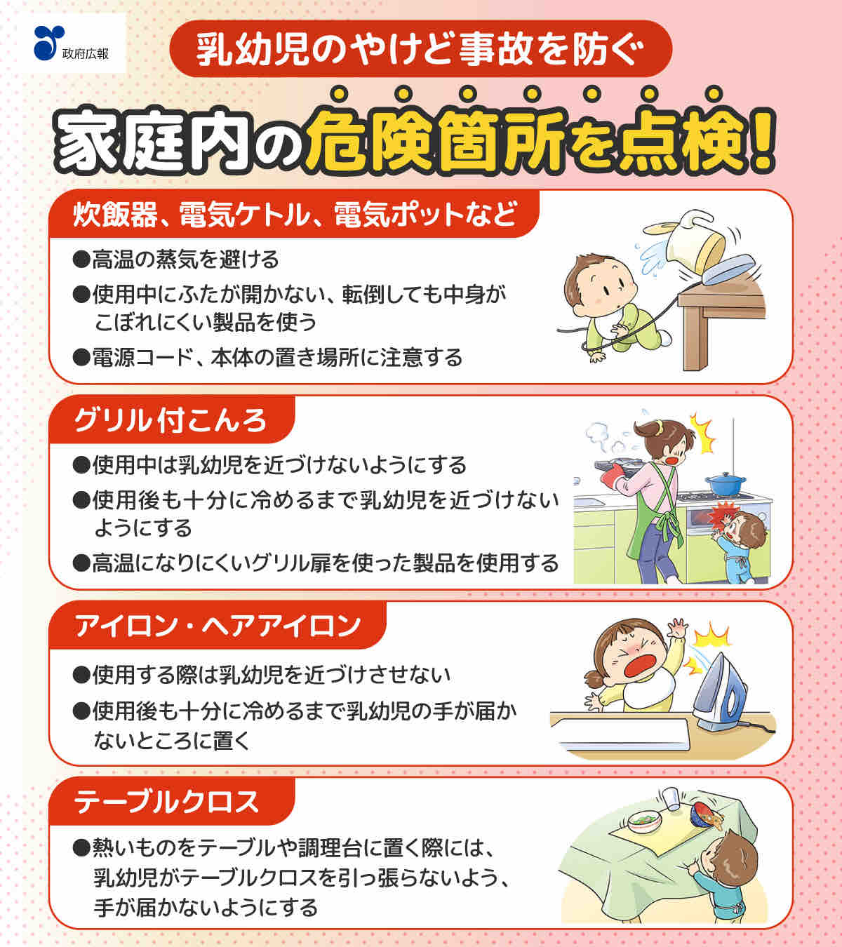 ちょっと目を離したすきに・・・そんな瞬間に起こるのが、乳幼児のやけど事故です。