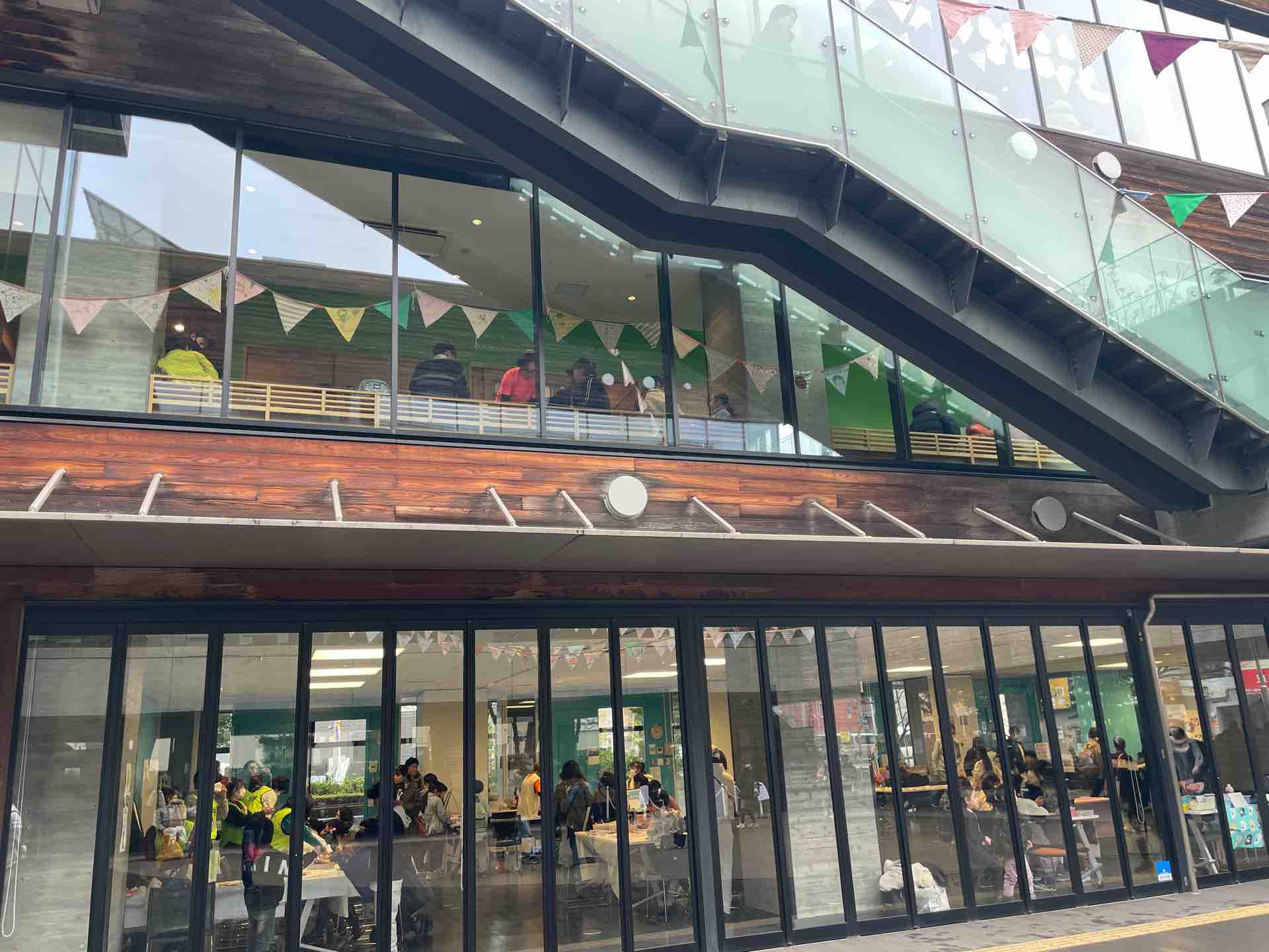 会場に到着した時に、誰かが音楽に合わせて歌っていたのですが特にステージが見当たらなかったのでどこで誰がと思っていたら、なんとカラオケマイクを握って子どもたちが次々と歌っているではないですか!マイクの前に設置されたスマホに映し出されるカラオケ歌詞をみながら広場のステージから流れる曲とともに歌うその歌声が響いていたのでした。