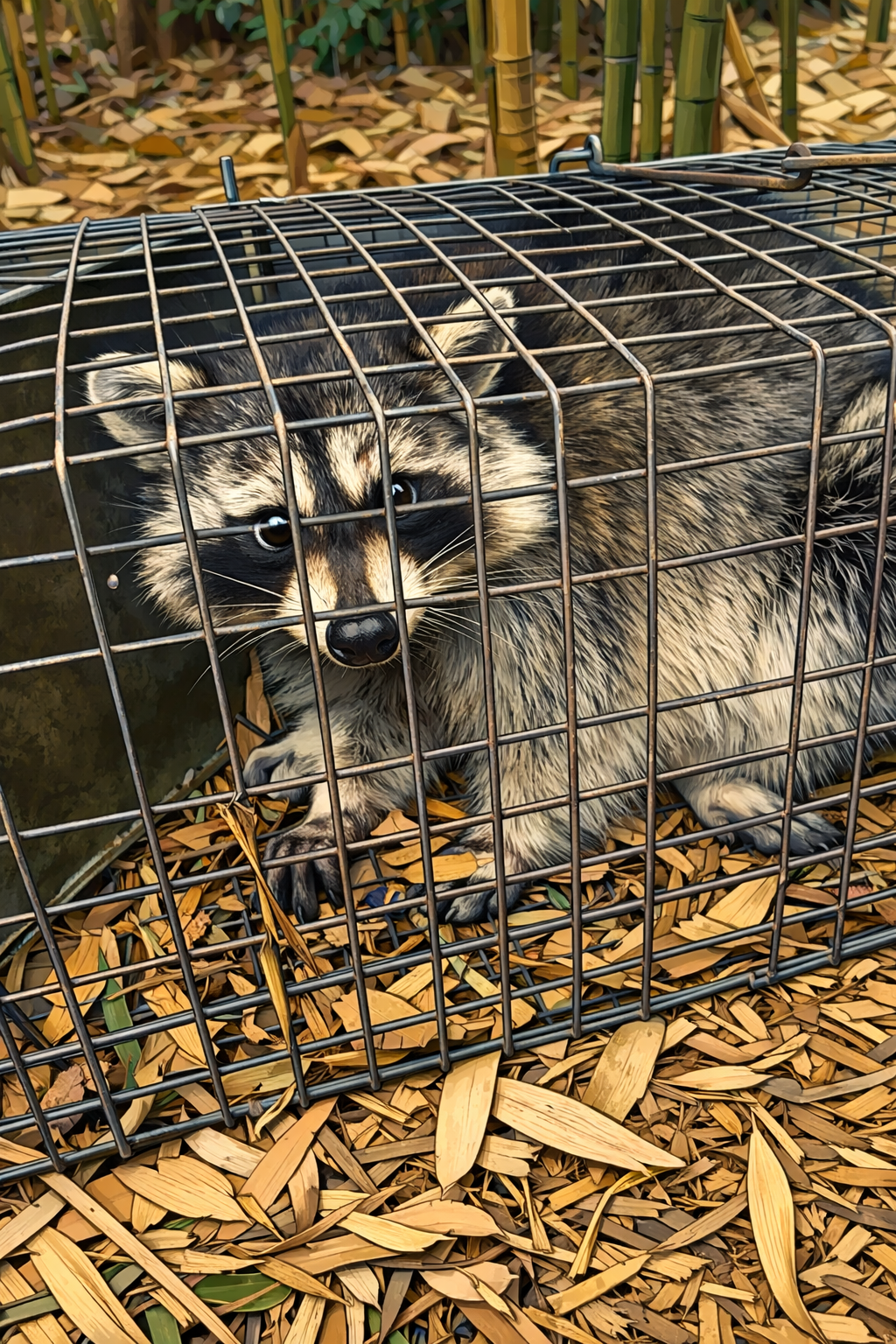 その動物はアライグマ。戸田市では、アライグマやハクビシンによる 生活環境や住宅への被害を防ぐために、箱わな(捕獲箱)による捕獲・駆除を「無料」で実施しています。