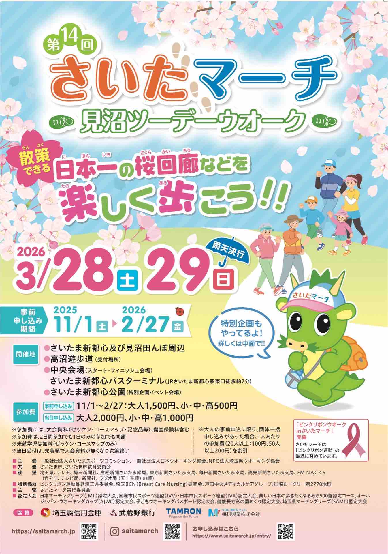 「さいたマーチ・見沼ツーデーウォーク」、ご関心のある方は添付のチラシや公式ホームページをご覧ください。