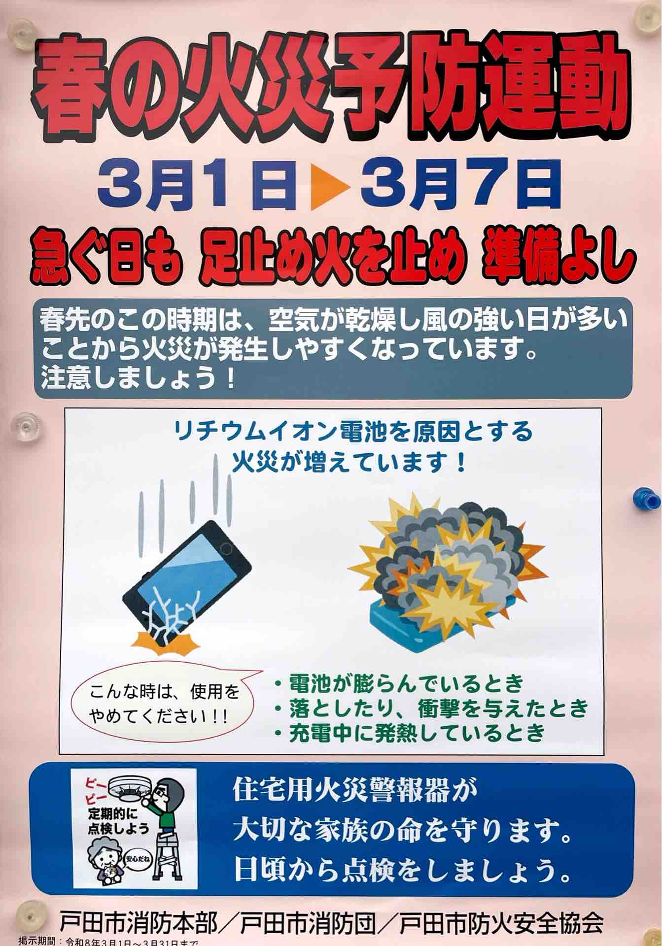 #春の火災予防運動 #火の用心 #リチウムイオン電池 #戸田市 #埼玉県 #防災 #安全な暮らし #ごみ分別 #住宅用火災警報器 #地域で守ろう #命を守る #林冬彦 #戸田市議会