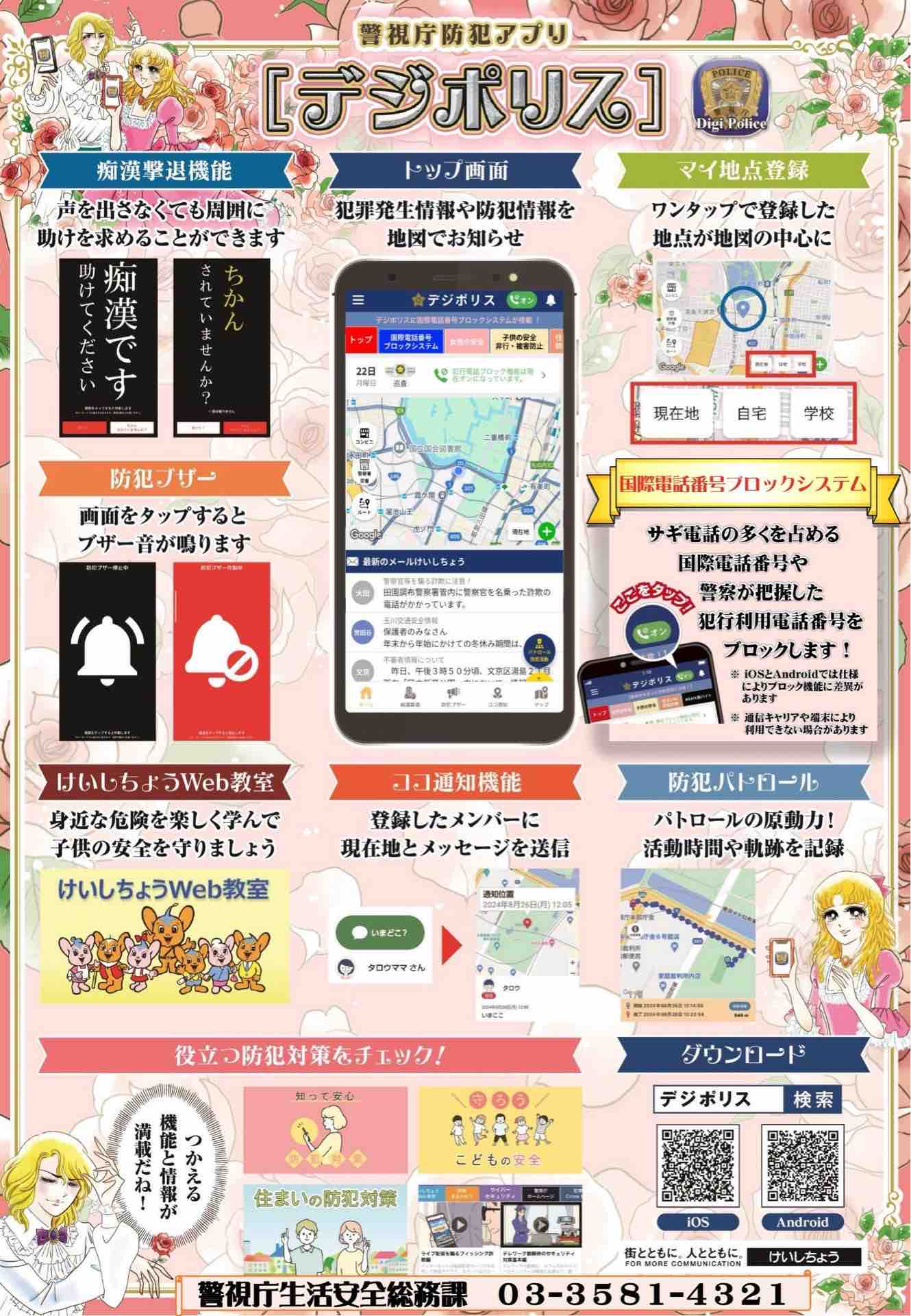 ■東京に通勤・通学される方、よく都内に出掛けられる方は、警視庁提供「デジポリス」アプリを入れておくと、情報収集、痴漢撃退、国際電話ブロックなどの防犯に役に立ちます。