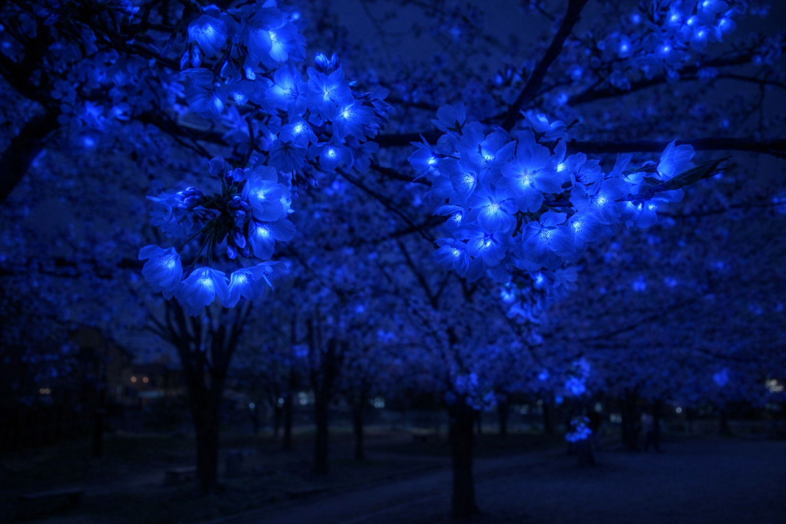 昼間は通常の桜と見分けがつかないものの、日没後にだけ幻想的な青い光をまとい、新曽沖内の夜景に新たな彩りを添えているそうです。